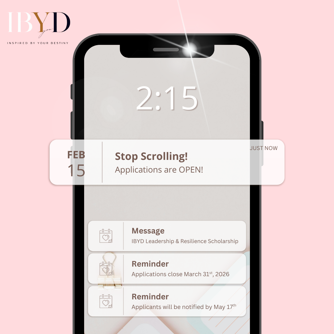 The IBYD Leadership and Resilience Scholarship is a privately funded award of $750. Applications are reviewed by an independent committee to ensure fairness and integrity. The founder of Inspired By Your Destiny does not participate in the selection process.